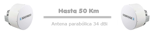 Antenas directivas tipo parabólica de muy alta ganancia, con una una apertura de 3 º x 3 º. Ya que son antenas ideales para cubrir muchos kilómetros y ofrecen una apertura muy reducida, es recomendable el uso de alguna herramienta de alineamiento. Con esta configuración se pueden obtener enlaces de hasta 50 Km, dependiendo también de la potencia de salida de la radio.