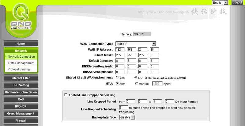 En este caso vamos a usar el rango 192.168.0.X como rango para aplicarlo a la parte LAN del QNO.