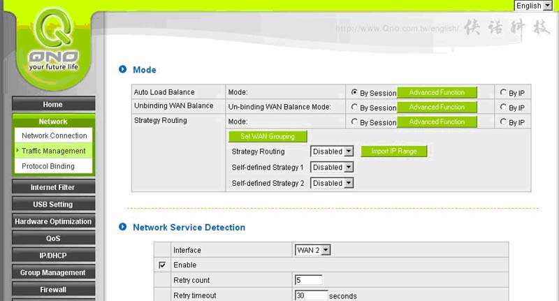 Por defecto el QNO trae la opciones de autobalanceo entre WANS, éstos ajustes y niveles de carga del tráfico se pueden definir en la pestaña | Network >> Traffic Management.