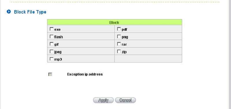 Del mismo modo, podemos activar filtro para la descarga de archivos. Por si queremos bloquear .EXE y Flash para garantizar de que no se ejecuten archivos con código malicioso en nuestros PC’s.