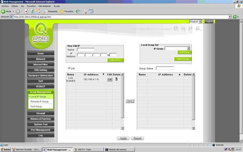 En ella le tenemos que asignar una IP fija al QNO para que no entre en conflicto, con otros dispositivos de la red existente, y crear dos subredes para los distintos grupos de PC’s.