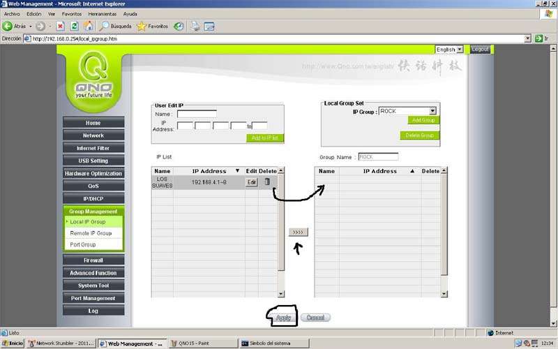 Ahora tenemos que pasar el rango de IP al grupo ROCK, para ello: