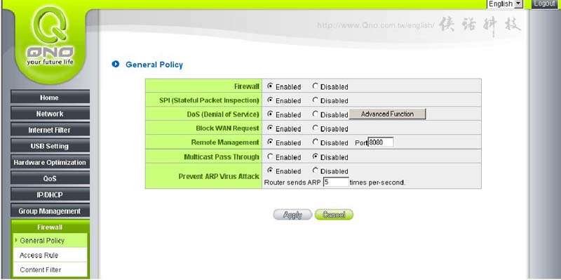 Nota : Para gestionar el dispositivo desde fuera, tendremos que ir previamente a Firewall >> General Policy >> Enabled |Remote Management.