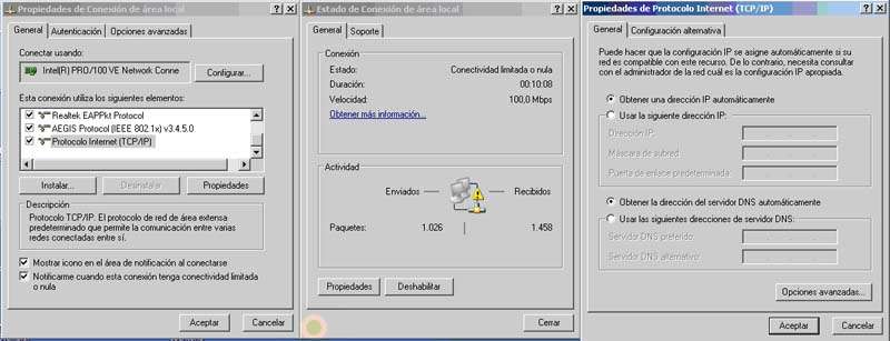 Para obtener dirección dinámica hay que editar las propiedades TCP/IP y seleccionar la opción “Obtener una dirección IP automáticamente”.