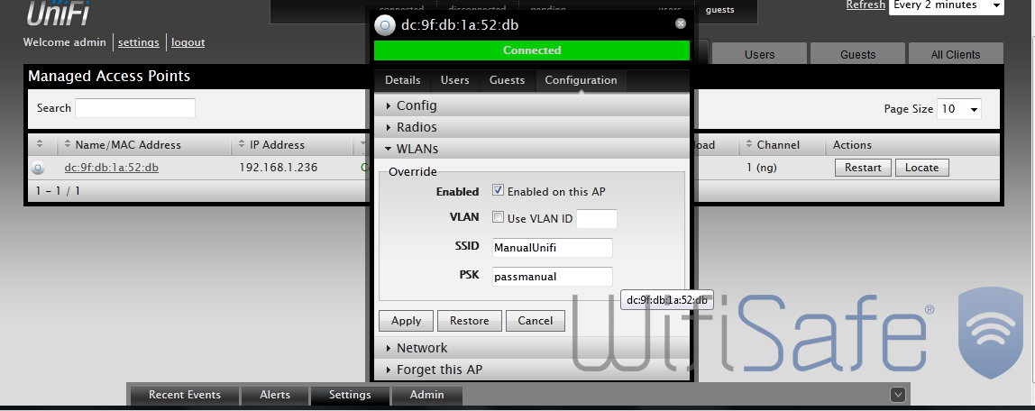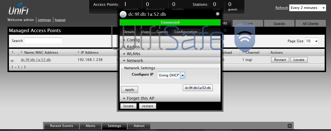 Una vez llegados a este punto, ya tenemos nuestro punto de acceso Unifi trabajando de forma independiente.
