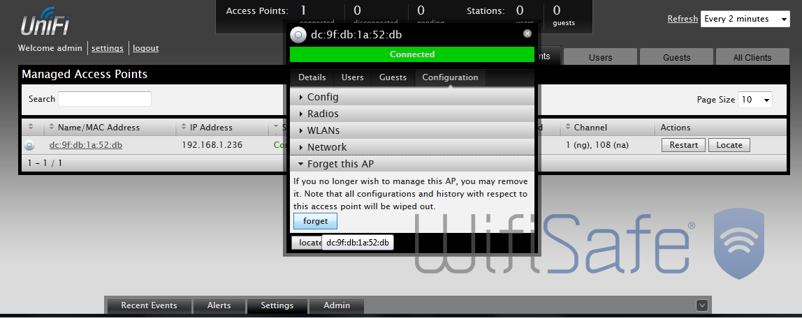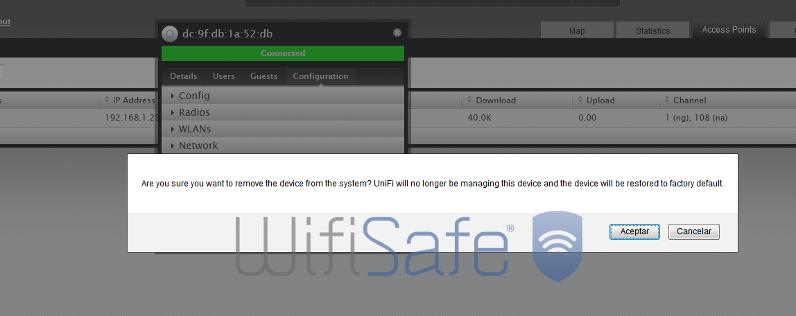 Si queremos volver a valores de fábrica uno de nuestros Unifi, tan solo tenemos que pulsar la opción de “Forget this AP” tal y como podemos ver en la siguiente imagen.