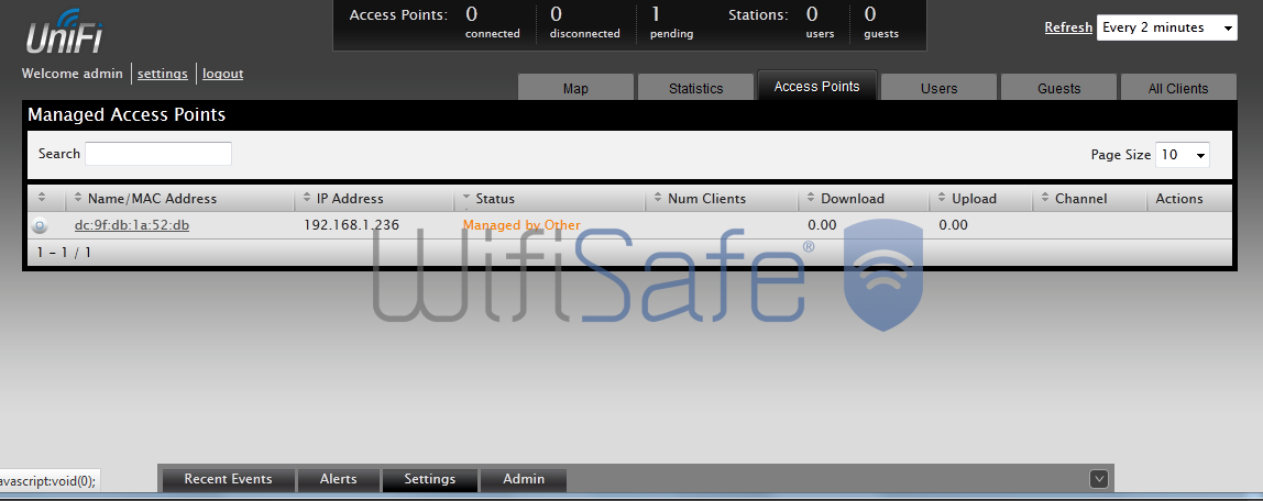 En ocasiones, nos encontraremos que cuando conectamos un Unifi que previamente ha sido configurado en otro PC nos aparece como “managed by other”. Para poder reconfigurarlo, lo único que podemos hacer el pulsar el botón de reset del Unifi hasta que parpadee la luz (unos 10 segundos) y esperar que se inicialice y volver a adoptarlo.